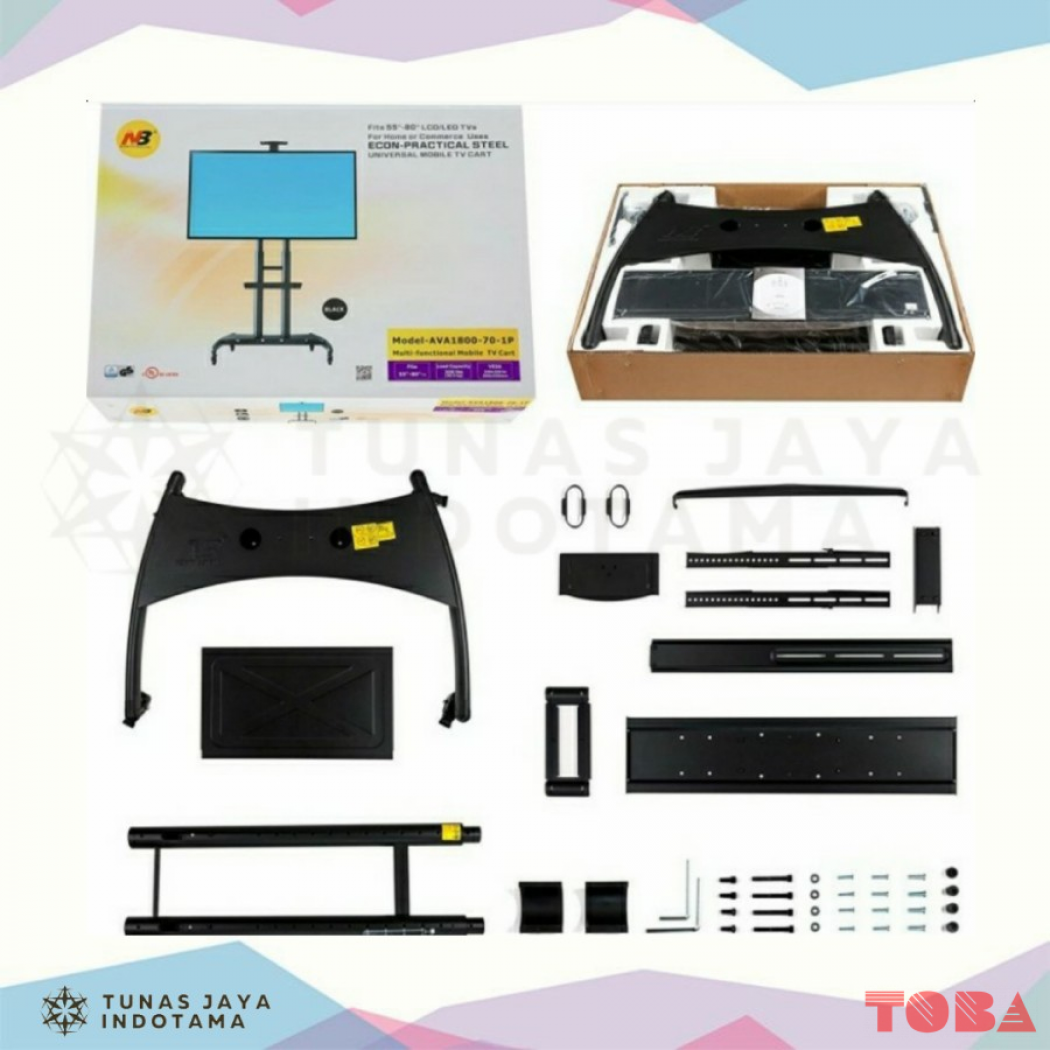 AVA1800-70-1P dirancang untuk membawa hingga 200 lbs (90.9kg) atau layar panel datar Maksimum 80” dengan 4 roda kastor rem tugas berat terpasang, memudahkan mobilitas di berbagai lantai.