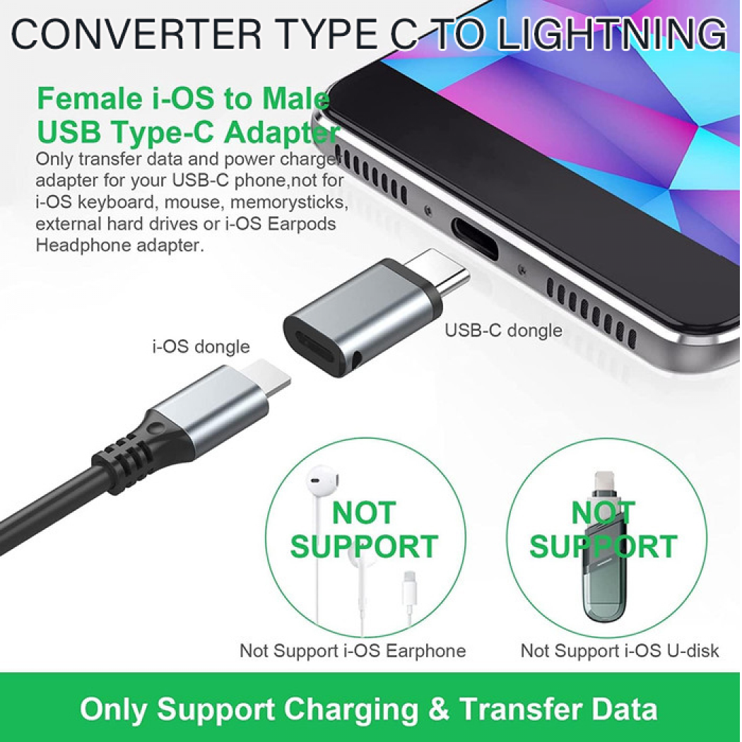 **Kompatibilitas Universal**: - Menghubungkan perangkat Apple dengan port lightning ke perangkat USB Type-C. - Ideal untuk iPhone, iPad, iPod. - Kompatibel dengan iPhone 15 yang menggunakan USB Type-C.
