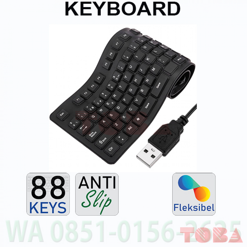 Sama seperti keyboard pada umumnya dan juga kelebihannya adalah keyboard sangat flexible, bisa digulung dan dimasukkan tas