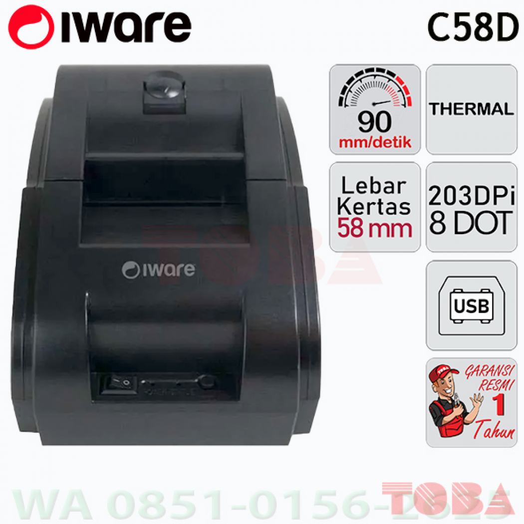 Diameter Kertas Thermal Maksimum : 48 mm